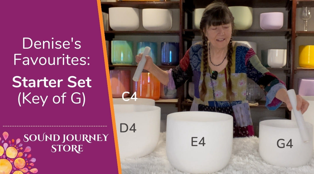 Denise loves playing with her Starter Set of crystal sound bowls. It allows her to create: