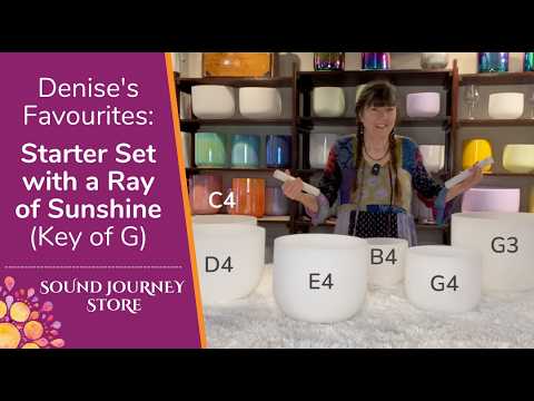 Building upon Denise's favourite "Starter Set in the Key of G", this set of crystal singing bowls adds a ray of sunshine with the high B4. It has the sweet lift to create the imagery of the sun peeking through the clouds.