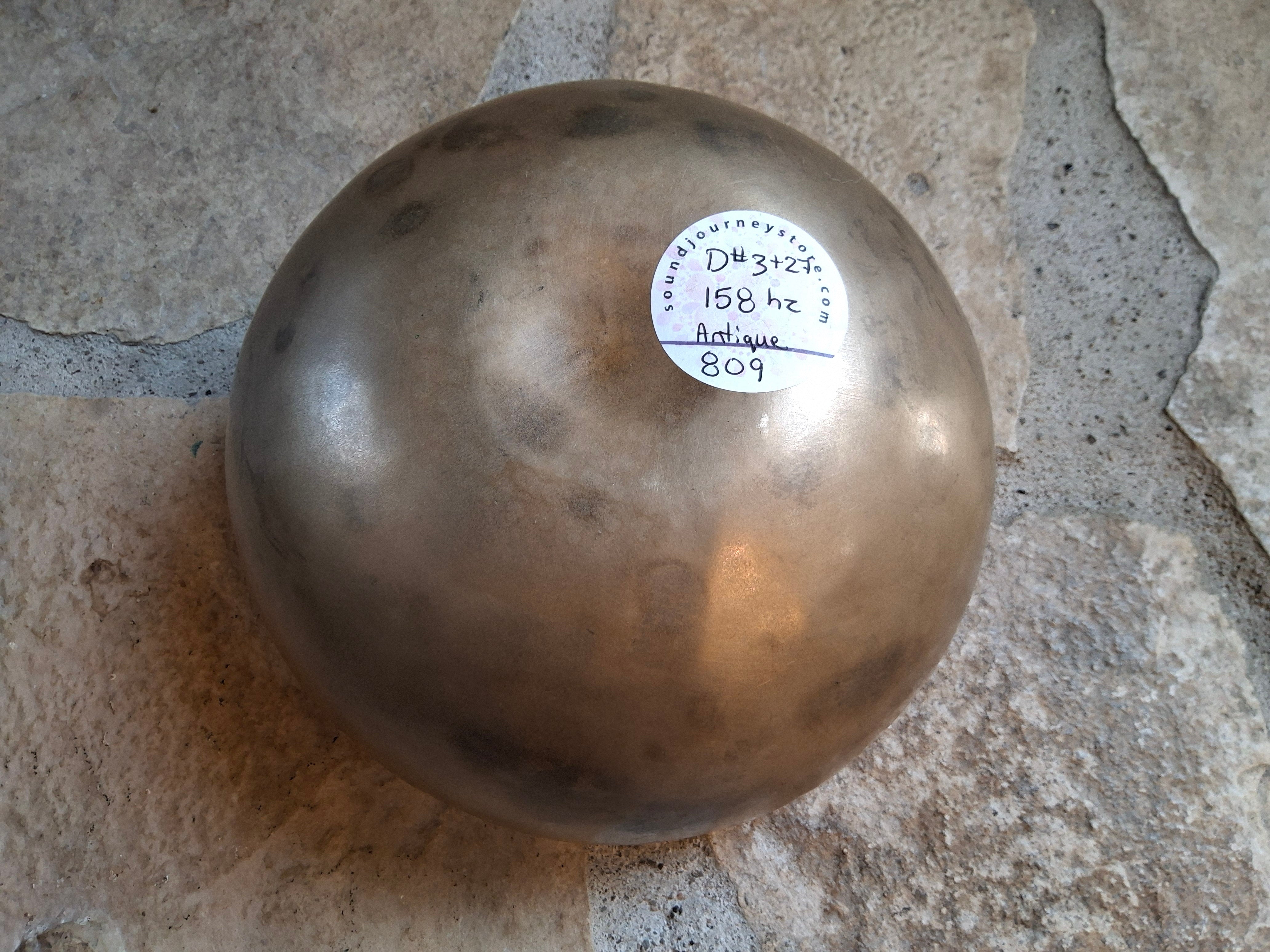 Bowl 809: 7.25" Vintage Himalayan Singing Bowl 158 HZ D#3+27