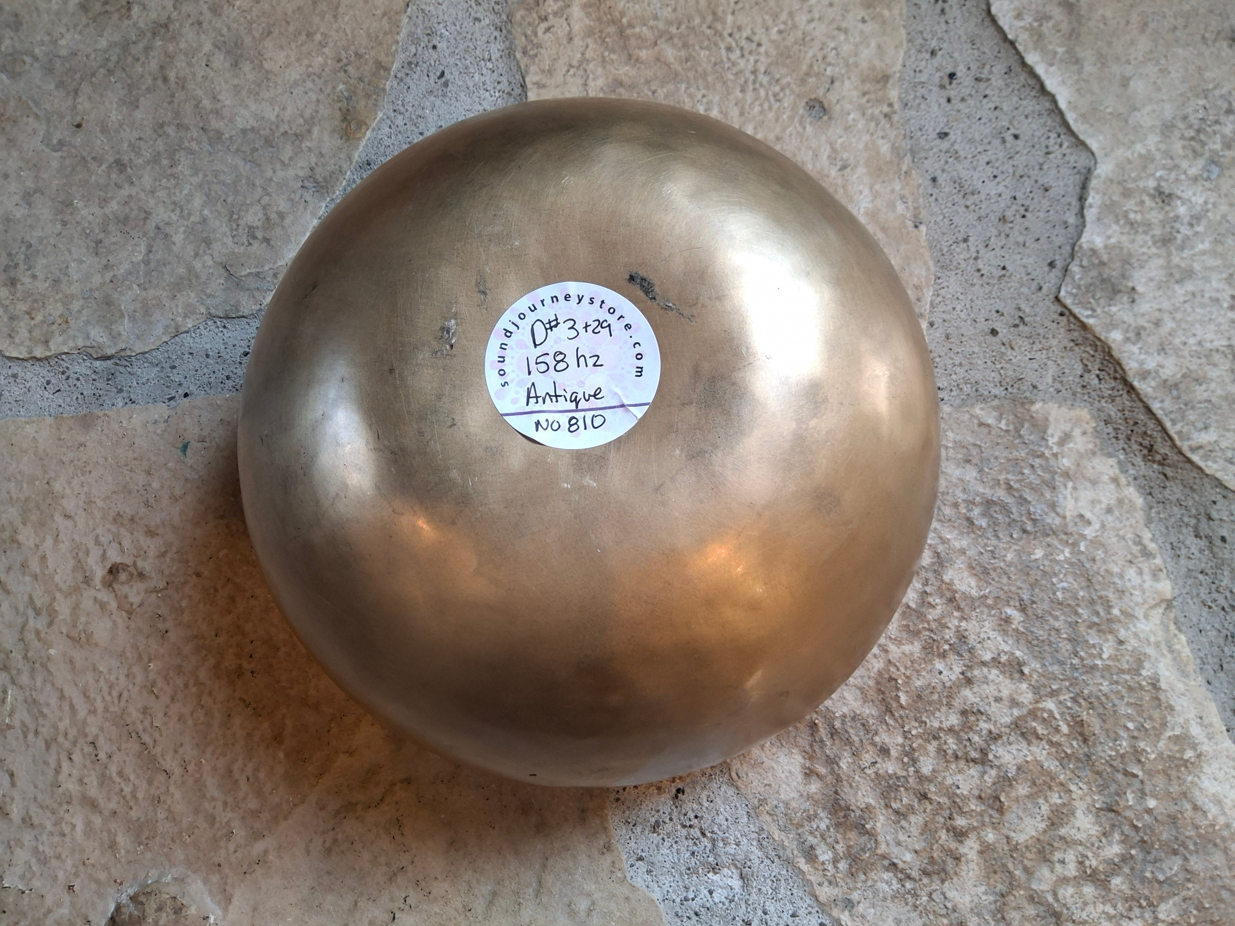Bowl 810: 7.25" Vintage Himalayan Singing Bowl 158 HZ D#3+29