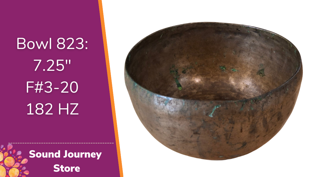 Bowl 823: 7.25" Antique Himalayan Singing Bowl 182 HZ F#3-28