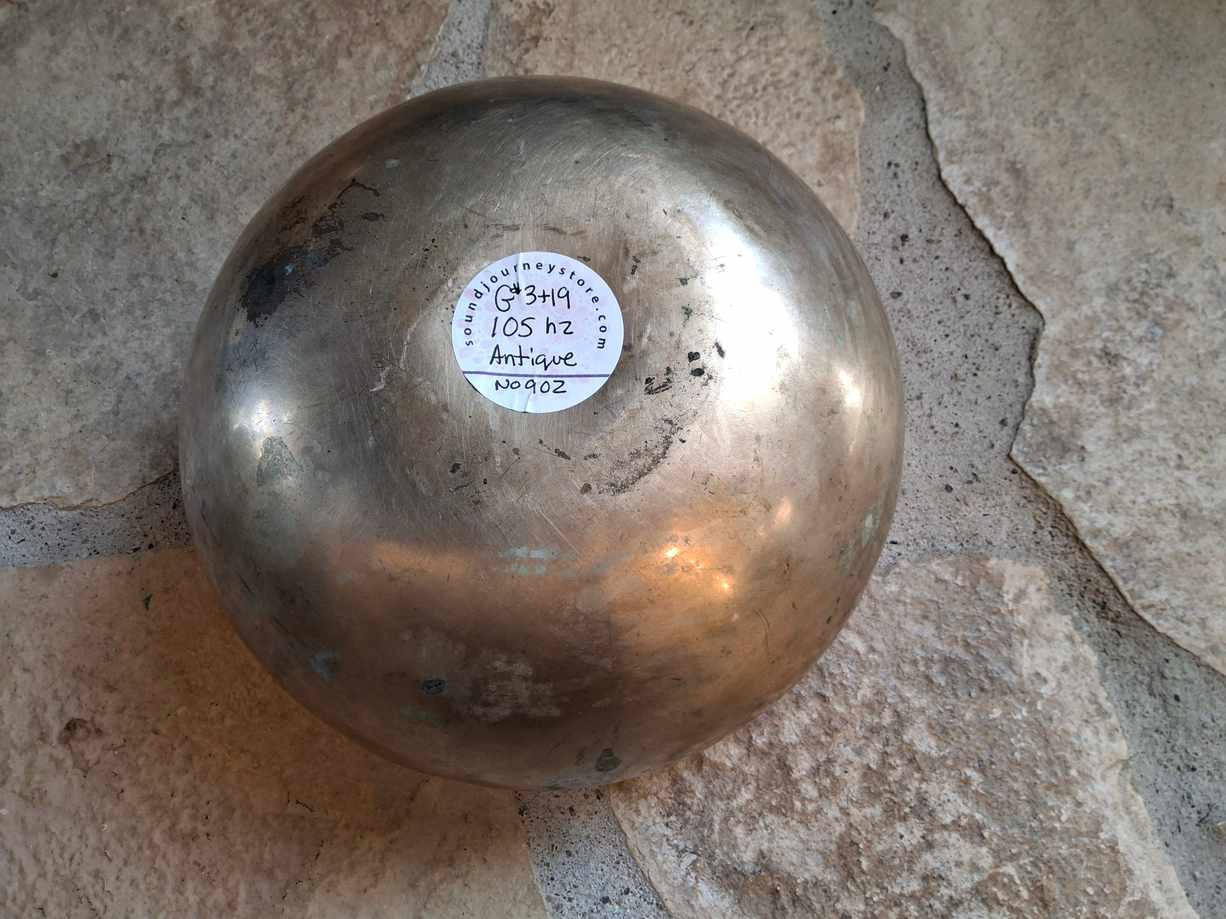 Bowl 902: 7.5" Antique Himalayan Singing Bowl 105 HZ G#2+19