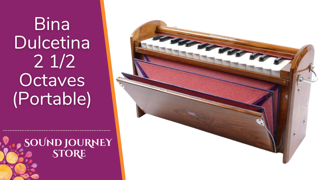 This model has 2 1/2 octaves with double reeds, with bellows opening on both sides. It has a slightly quieter sound than the larger 3 1/2 octave model.