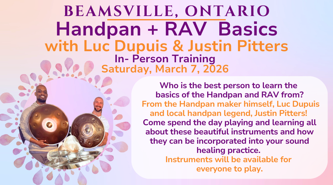 Learn all about Handpans from our very talented handpan maker Luc Dupuis and local handpan legend, Justin Pitters. Luc will bring handpans for everyone to use a play. This course is perfect for those who have never played a handpan, or beginners who would like to make sure they have their basic skills down just right.